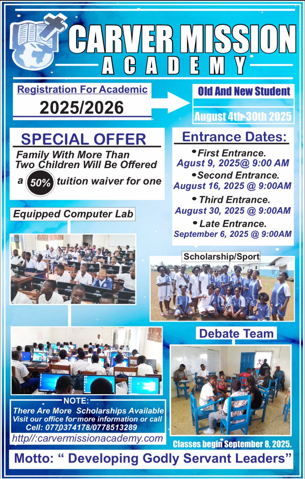 Carver Mission Academy (CMA) was founded in 1961 by black American missionaries from Carver International Missions. Initially, the Academy was founded to teach young people how to read and write; because without skills they could not understand God’s word. Over the years, the Academy has graduated many students who serve in government, private and public sectors, educational institutions and the church.